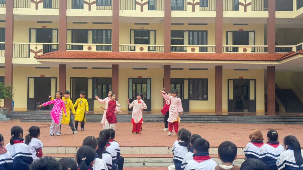 Nổi bật trong chuỗi hoạt động là các tiết mục múa hát tập thể, văn nghệ chào xuân do chính các em học sinh biểu diễn. Những giai điệu vui tươi, trong sáng về mùa xuân, quê hương, đất nước, thầy cô và mái trường thân yêu đã được các em thể hiện hồn nhiên, tự tin, mang đến niềm vui và không khí ấm áp cho sân trường những ngày giáp Tết.