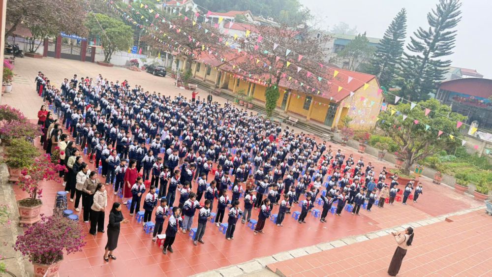Trong giờ chào cờ, nhà trường đã tổ chức các nội dung sinh hoạt chủ điểm với những tiết mục văn nghệ đặc sắc ca ngợi Đảng, Bác Hồ, quê hương đất nước và mùa xuân. Xen kẽ là các hoạt động tuyên truyền giúp học sinh hiểu thêm về ý nghĩa của ngày thành lập Đảng, nét đẹp truyền thống của Tết cổ truyền dân tộc, giáo dục các em tinh thần yêu nước, lòng tự hào dân tộc và ý thức giữ gìn bản sắc văn hóa Việt Nam.