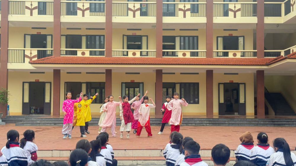 Bên cạnh đó, các hoạt động ngoài giờ lên lớp cũng được triển khai sôi nổi, phong phú như: trang trí lớp học, làm báo tường, vẽ tranh với chủ đề “Mừng Đảng - Mừng Xuân”, giao lưu văn nghệ, trò chơi dân gian, thi tìm hiểu về mùa xuân và phong tục Tết cổ truyền. Những hoạt động này không chỉ tạo sân chơi bổ ích, lành mạnh mà còn góp phần rèn luyện kỹ năng sống, tinh thần đoàn kết và khả năng sáng tạo cho học sinh.